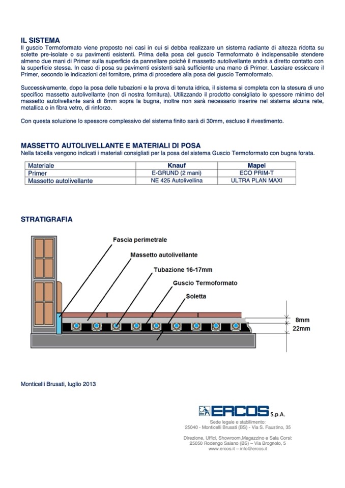 solette pre-isolate o su pavimenti esistenti. Prima della posa del guscio Termoformato è indispensabile stendere