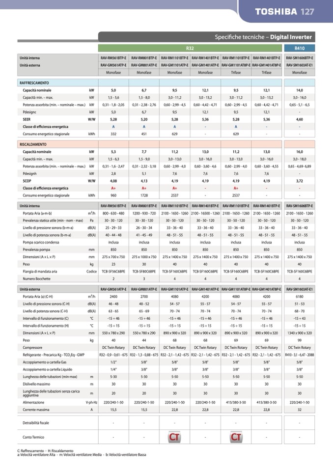 C: Raffrescamento - H: Riscaldamento