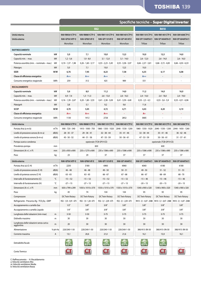 C: Raffrescamento - H: Riscaldamento