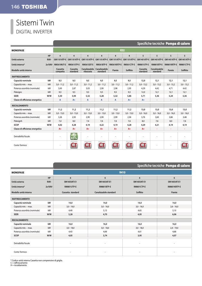 * Codice unità interna Cassetta non comprensivo di griglia.