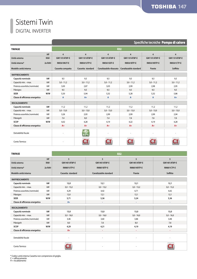 * Codice unità interna Cassetta non comprensivo di griglia.