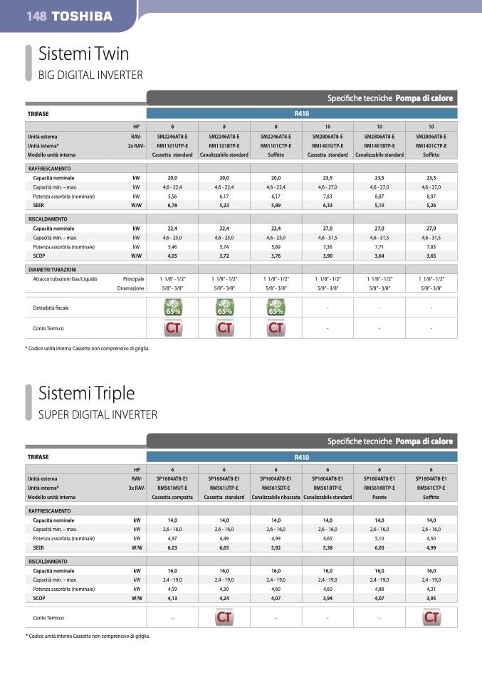 * Codice unità interna Cassetta non comprensivo di griglia.