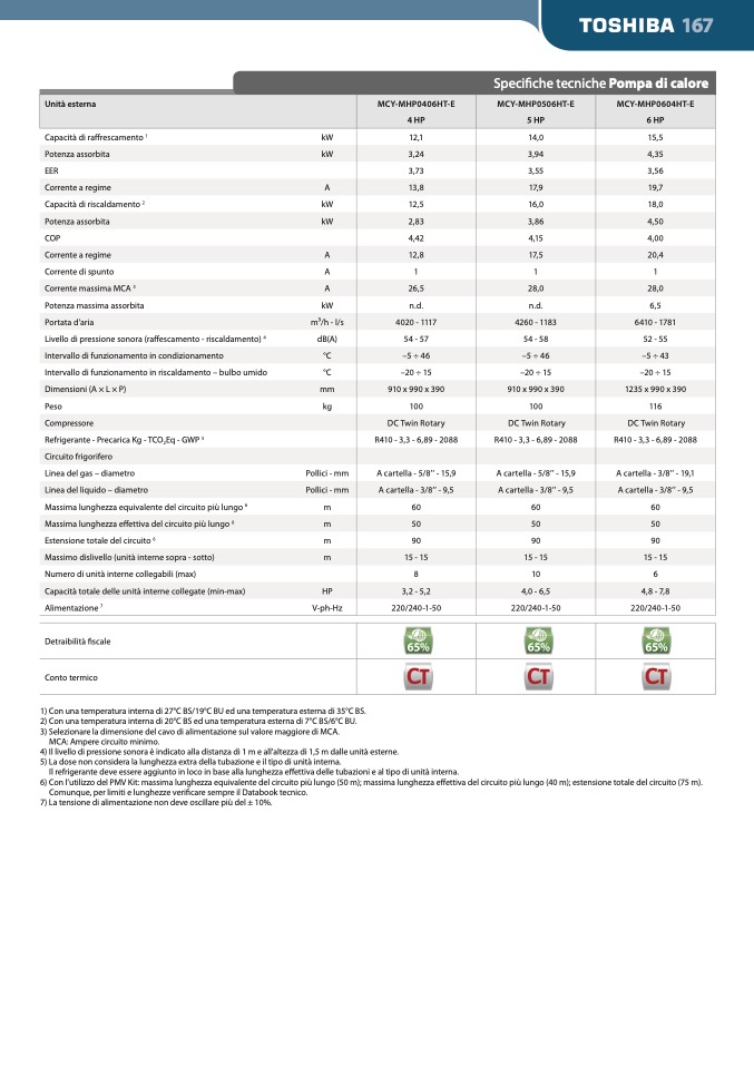 4) Il livello di pressione sonora è indicato alla distanza di 1 m e all'altezza di 1,5 m dalle unità esterne.