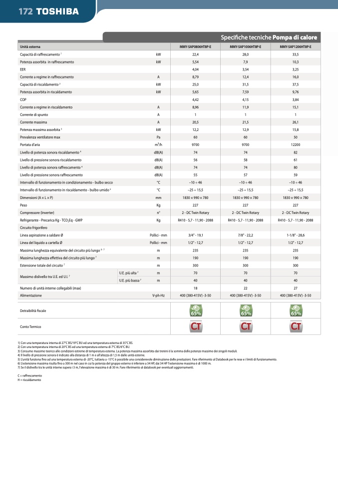 5) L'unità funziona fino ad una temperatura esterna di -20°C, tuttavia a -15°C è possibile una considerevole diminuzione delle prestazioni. Fare riferimento al Databook per le rese e i limiti di funzionamento.