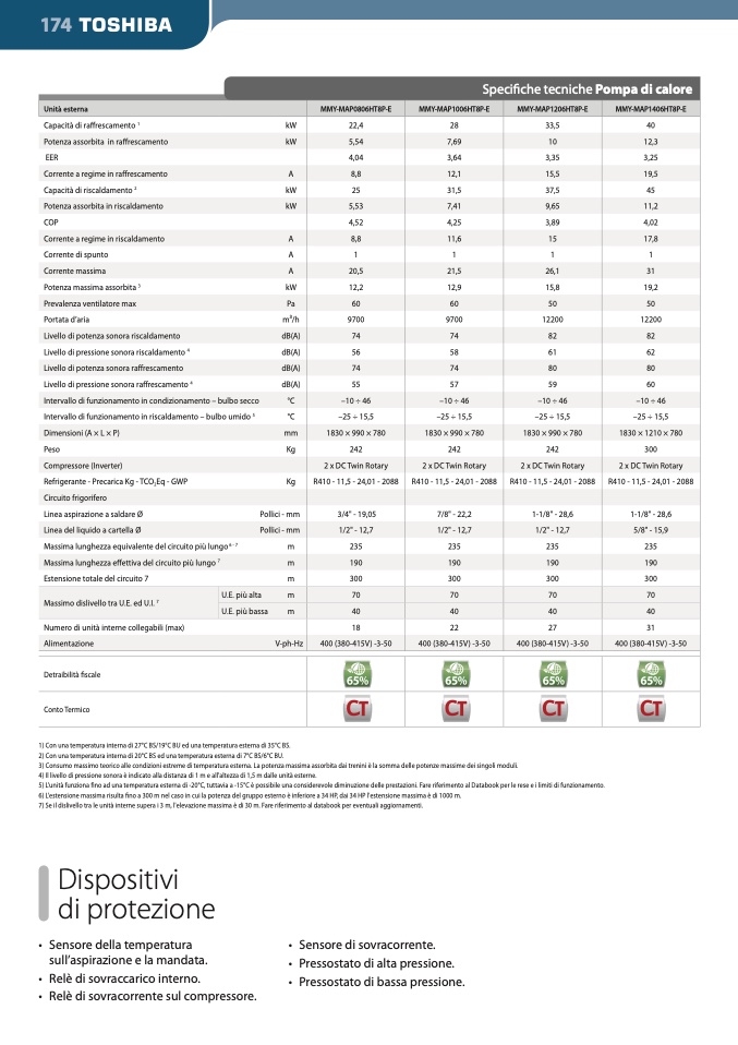5) L'unità funziona fino ad una temperatura esterna di -20°C, tuttavia a -15°C è possibile una considerevole diminuzione delle prestazioni. Fare riferimento al Databook per le rese e i limiti di funzionamento.