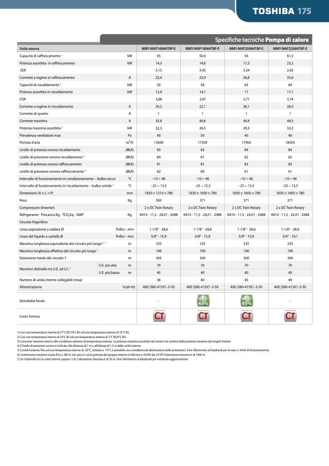 5) L'unità funziona fino ad una temperatura esterna di -20°C, tuttavia a -15°C è possibile una considerevole diminuzione delle prestazioni. Fare riferimento al Databook per le rese e i limiti di funzionamento.