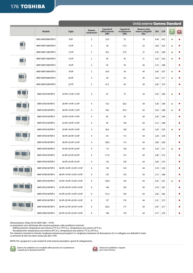 Le prestazioni sono dichiarate alla massima potenza e alle condizioni nominali: