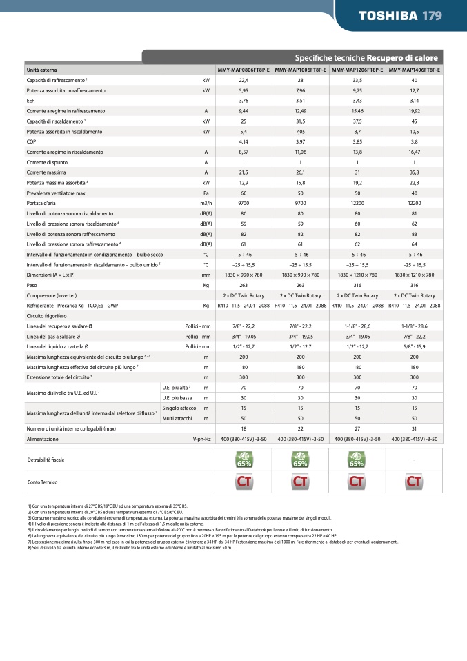 7) L'estensione massima risulta fino a 300 m nel caso in cui la potenza del gruppo esterno è inferiore a 34 HP, dai 34 HP l'estensione massima è di 1000 m. Fare riferimento al databook per eventuali aggiornamenti.