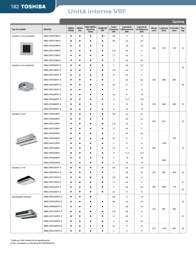 * Griglia per unità Cassetta fornita separatamente.