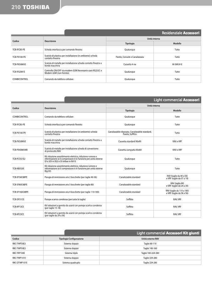 e VRF (taglie da 07 a 18)