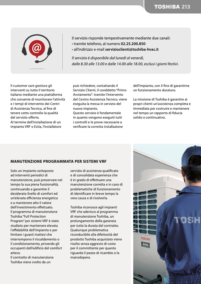 • all’indirizzo e-mail servizioclienti@toshiba-hvac.it