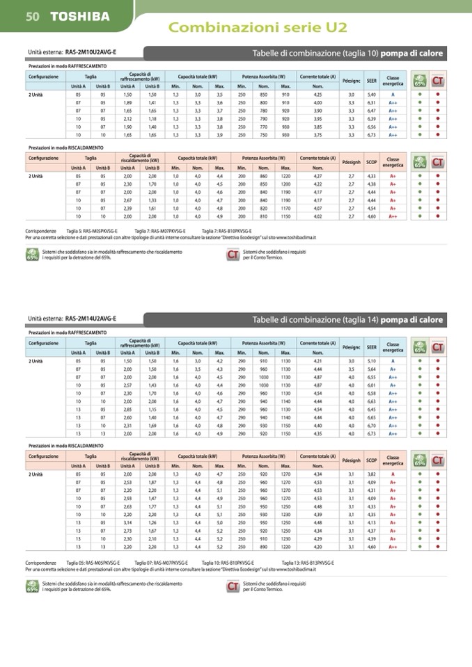 Per una corretta selezione e dati prestazionali con altre tipologie di unità interne consultare la sezione “Direttiva Ecodesign” sul sito www.toshibaclima.it