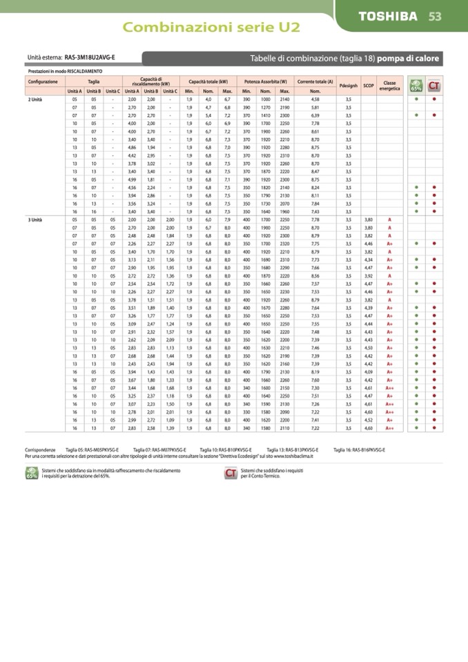 Per una corretta selezione e dati prestazionali con altre tipologie di unità interne consultare la sezione “Direttiva Ecodesign” sul sito www.toshibaclima.it