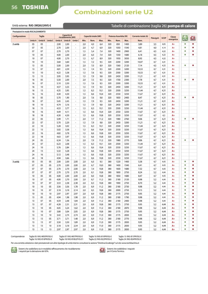 Per una corretta selezione e dati prestazionali con altre tipologie di unità interne consultare la sezione “Direttiva Ecodesign” sul sito www.toshibaclima.it
