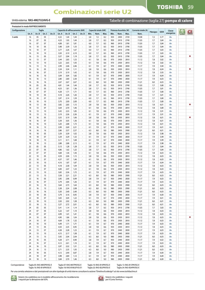 Per una corretta selezione e dati prestazionali con altre tipologie di unità interne consultare la sezione “Direttiva Ecodesign” sul sito www.toshibaclima.it