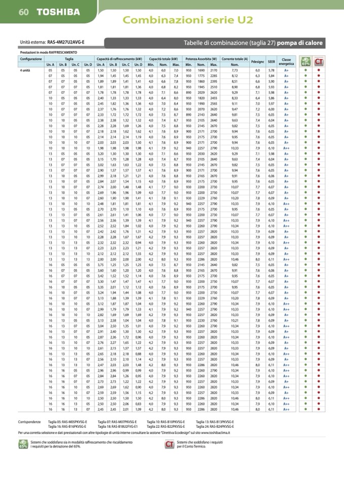 Per una corretta selezione e dati prestazionali con altre tipologie di unità interne consultare la sezione “Direttiva Ecodesign” sul sito www.toshibaclima.it