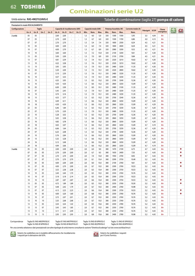 Per una corretta selezione e dati prestazionali con altre tipologie di unità interne consultare la sezione “Direttiva Ecodesign” sul sito www.toshibaclima.it