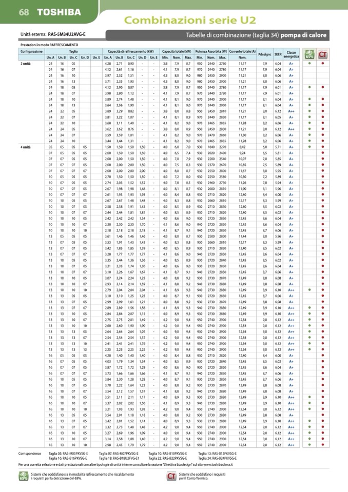 Per una corretta selezione e dati prestazionali con altre tipologie di unità interne consultare la sezione “Direttiva Ecodesign” sul sito www.toshibaclima.it