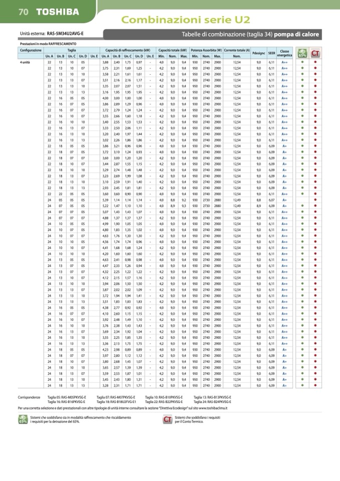 Per una corretta selezione e dati prestazionali con altre tipologie di unità interne consultare la sezione “Direttiva Ecodesign” sul sito www.toshibaclima.it