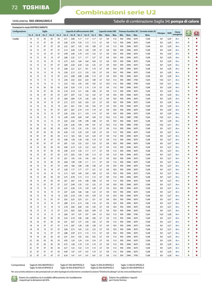 Per una corretta selezione e dati prestazionali con altre tipologie di unità interne consultare la sezione “Direttiva Ecodesign” sul sito www.toshibaclima.it