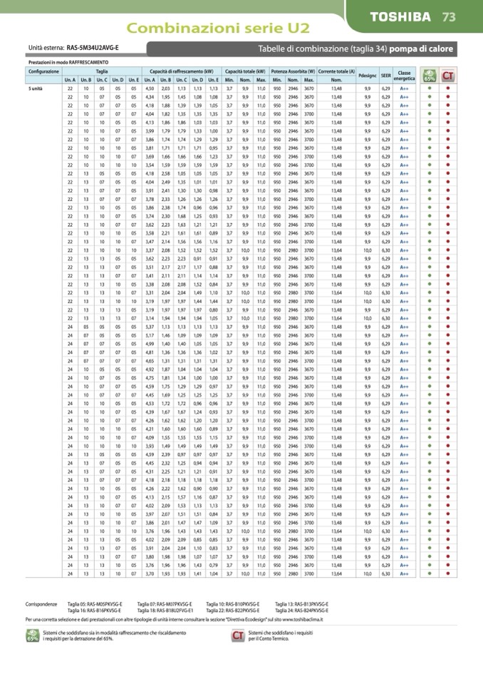 Per una corretta selezione e dati prestazionali con altre tipologie di unità interne consultare la sezione “Direttiva Ecodesign” sul sito www.toshibaclima.it