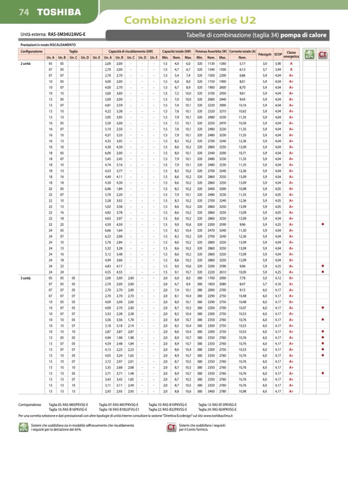 Per una corretta selezione e dati prestazionali con altre tipologie di unità interne consultare la sezione “Direttiva Ecodesign” sul sito www.toshibaclima.it