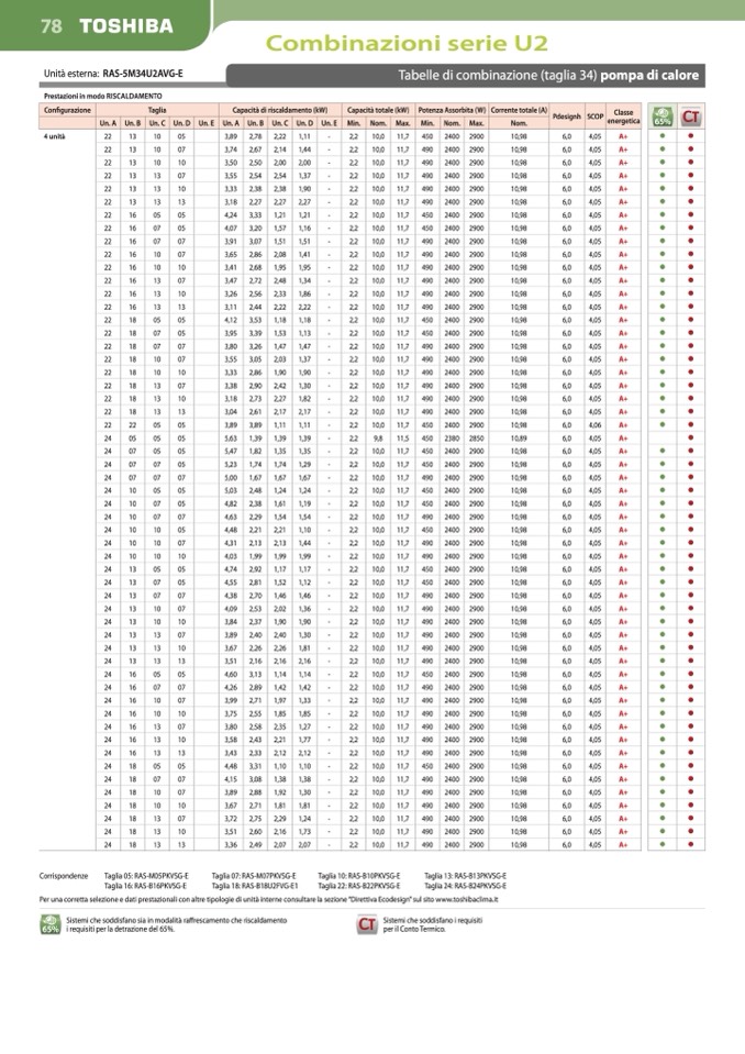 Per una corretta selezione e dati prestazionali con altre tipologie di unità interne consultare la sezione “Direttiva Ecodesign” sul sito www.toshibaclima.it
