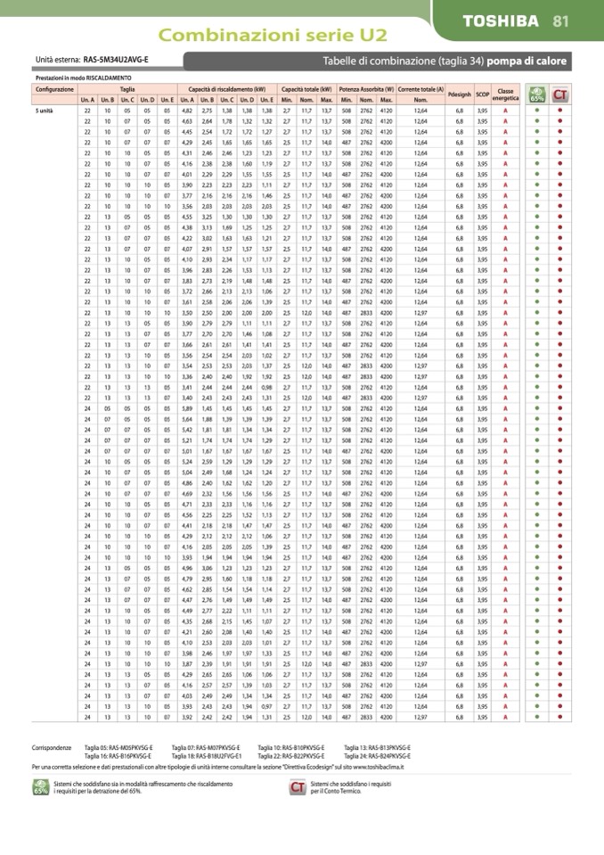 Per una corretta selezione e dati prestazionali con altre tipologie di unità interne consultare la sezione “Direttiva Ecodesign” sul sito www.toshibaclima.it