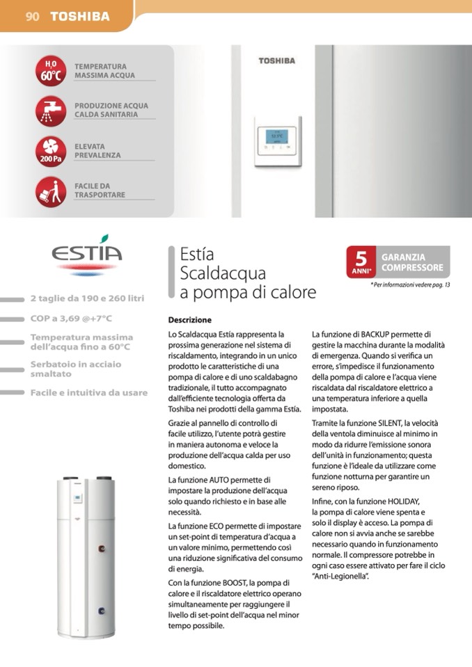 Toshiba nei prodotti della gamma Estía.