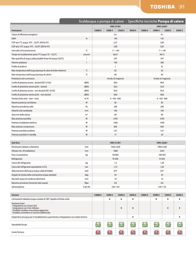 COP aria 15°C acqua 10°C - 52,9°C (EN16147)