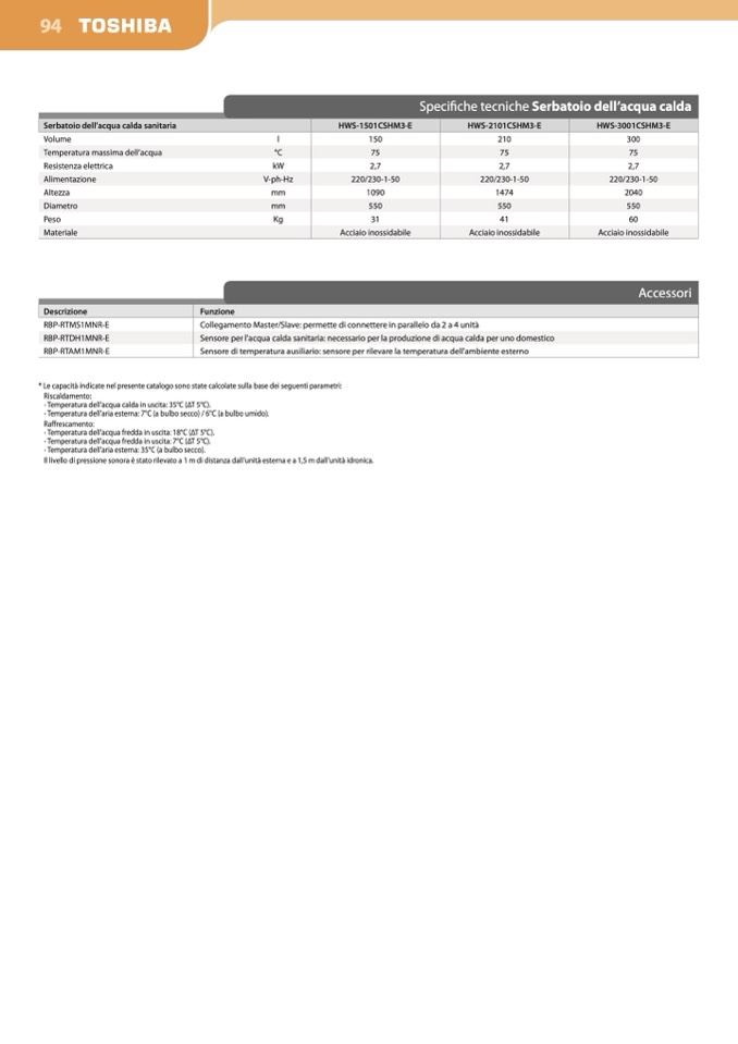 * Le capacità indicate nel presente catalogo sono state calcolate sulla base dei seguenti parametri: