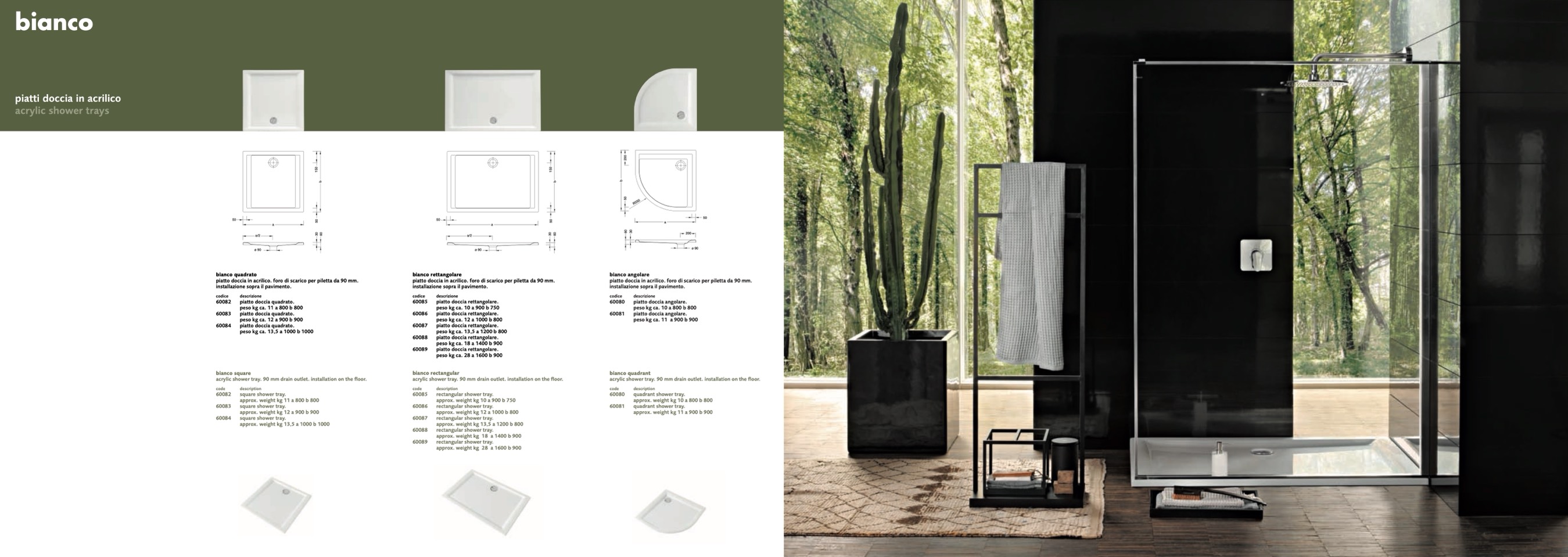 piatto doccia in acrilico. foro di scarico per piletta da 90 mm.