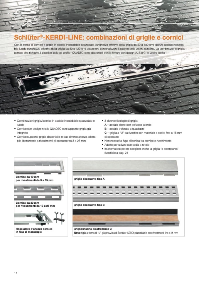 Nota: riglia a forma di “U” già provvista di Schlüter-KERDI piastrellabile con rivestimenti fino a15 mm
