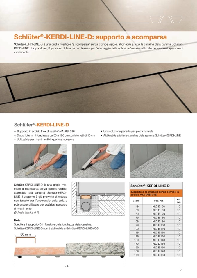 Abbinabile a tutte le canaline della gamma Schlüter-KERDI-LINE