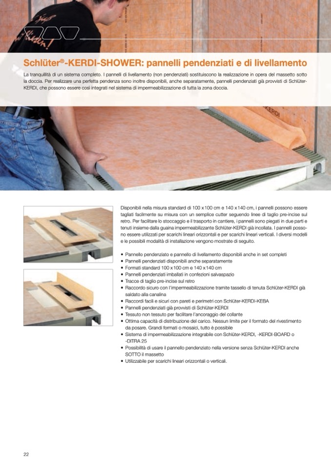la doccia. Per realizzare una perfetta pendenza sono inoltre disponibili, anche separatamente, pannelli pendenziati già provvisti di Schlüter-
