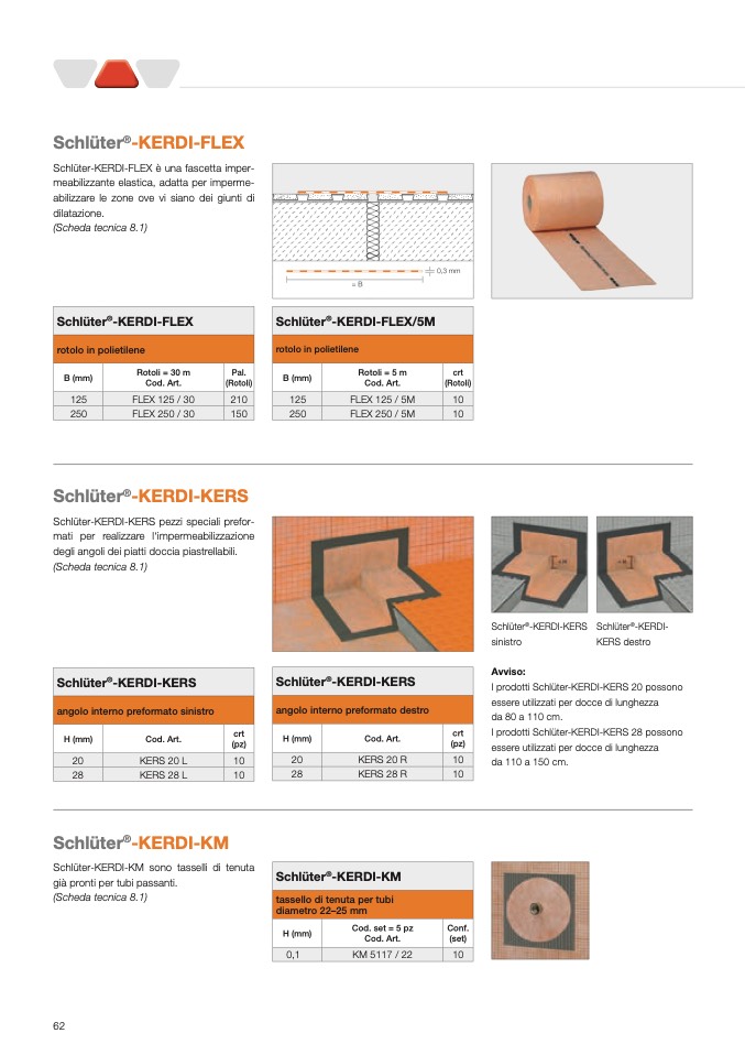 I prodotti Schlüter-KERDI-KERS 20 possono