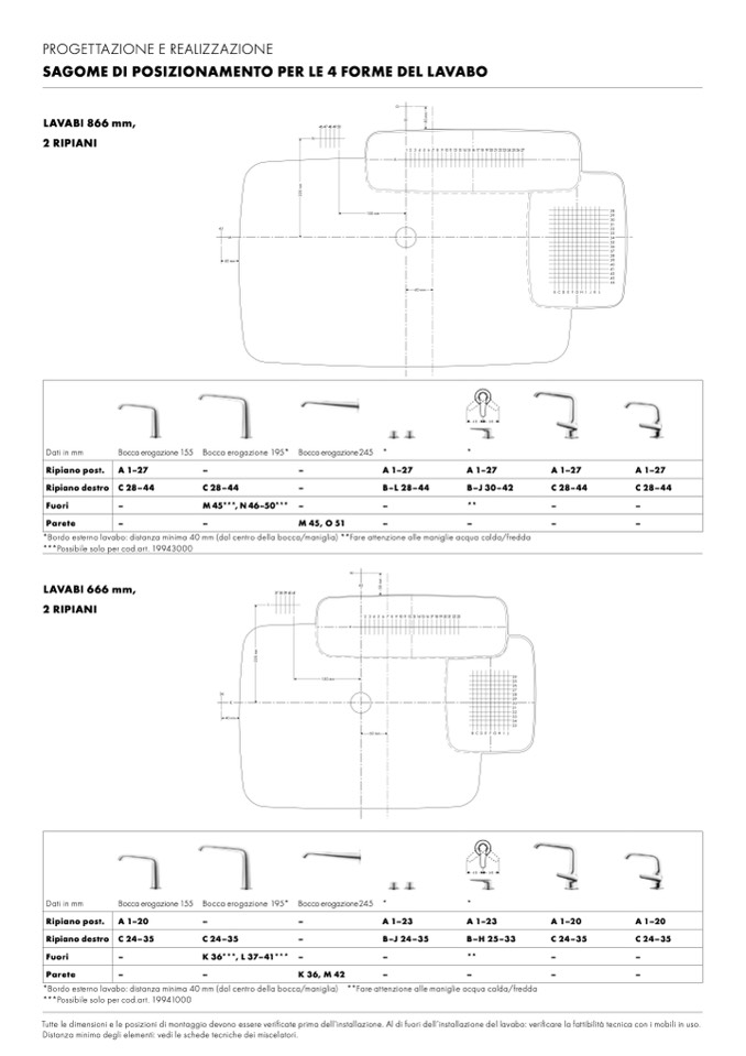 *Bordo esterno lavabo: distanza minima 40 mm (dal centro della bocca/maniglia) **Fare attenzione alle maniglie acqua calda/fredda