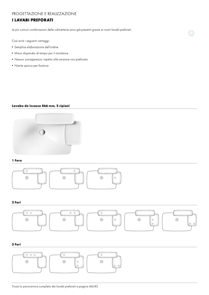 Trova la panoramica completa dei lavabi preforati a pagina 44/45.
