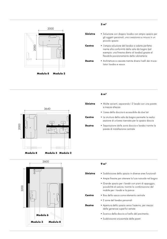 • Separazione delle zone doccia e lavabo tramite la