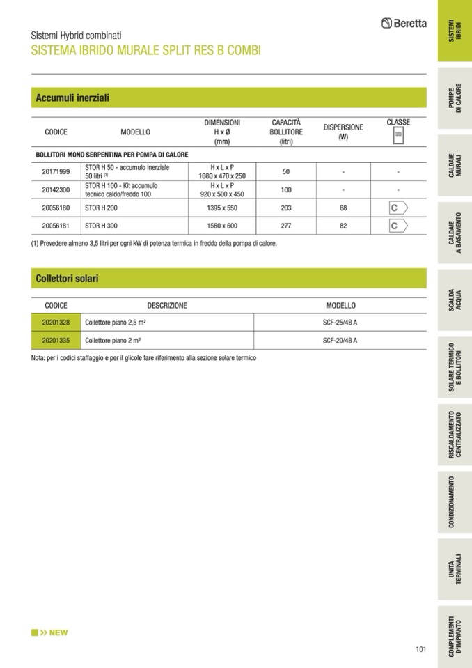 Nota: per i codici staffaggio e per il glicole fare riferimento alla sezione solare termico