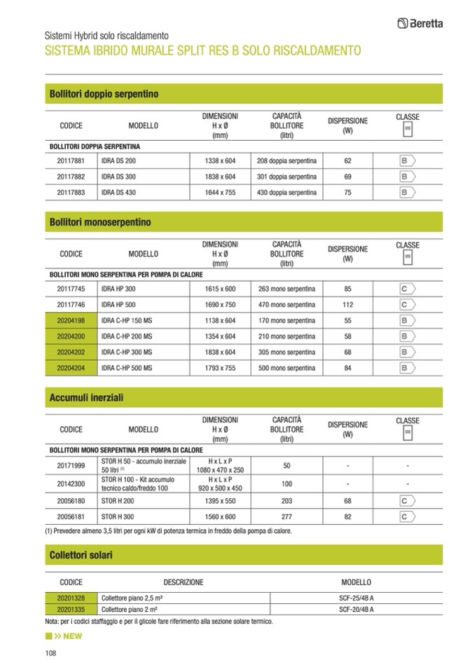 Nota: per i codici staffaggio e per il glicole fare riferimento alla sezione solare termico.