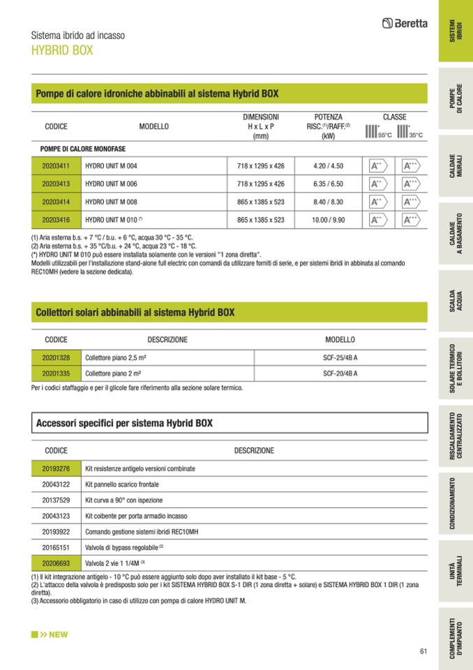 (3) Accessorio obbligatorio in caso di utilizzo con pompa di calore HYDRO UNIT M.