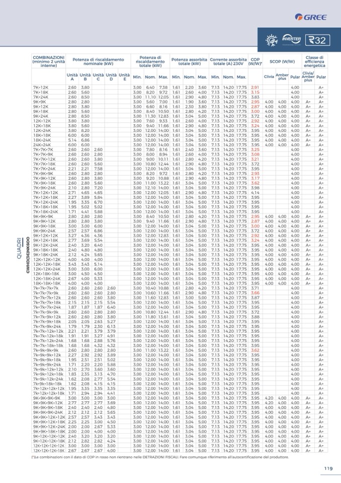 (*)Le combinazioni con il dato di COP in rosso non rientrano nelle DETRAZIONI FISCALI. Fare comunque riferimento all’autocerti
