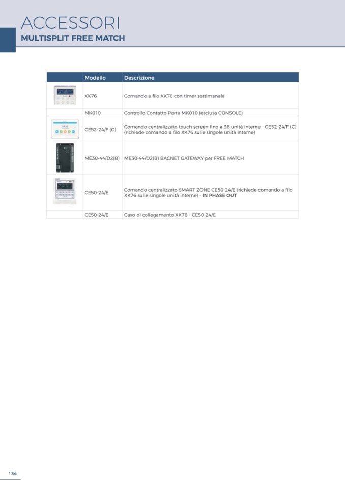 (richiede comando a filo XK76 sulle singole unità interne)