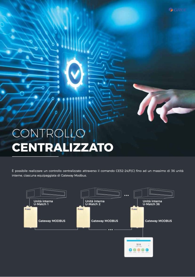 È possibile realizzare un controllo centralizzato attraverso il comando CE52-24/F(C) fino ad un massimo di 36 unità