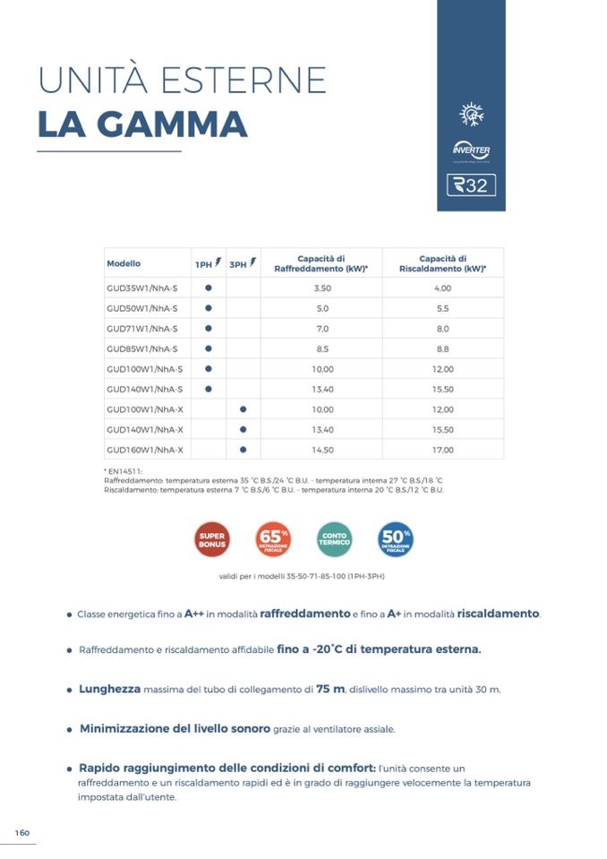 Lunghezza massima del tubo di collegamento di 75 m, dislivello massimo tra unità 30 m.