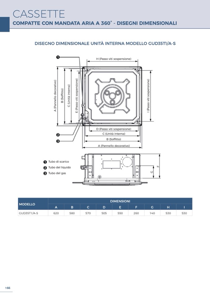 DISEGNO DIMENSIONALE UNITÀ INTERNA MODELLO GUD35T1/A-S