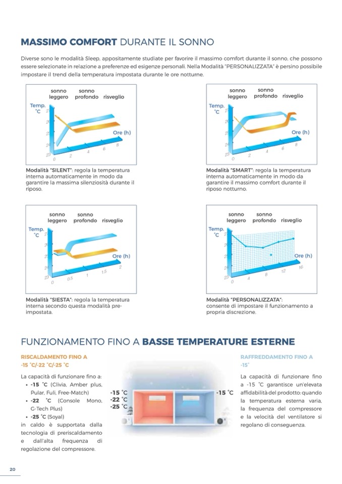 Diverse sono le modalità Sleep, appositamente studiate per favorire il massimo comfort durante il sonno, che possono