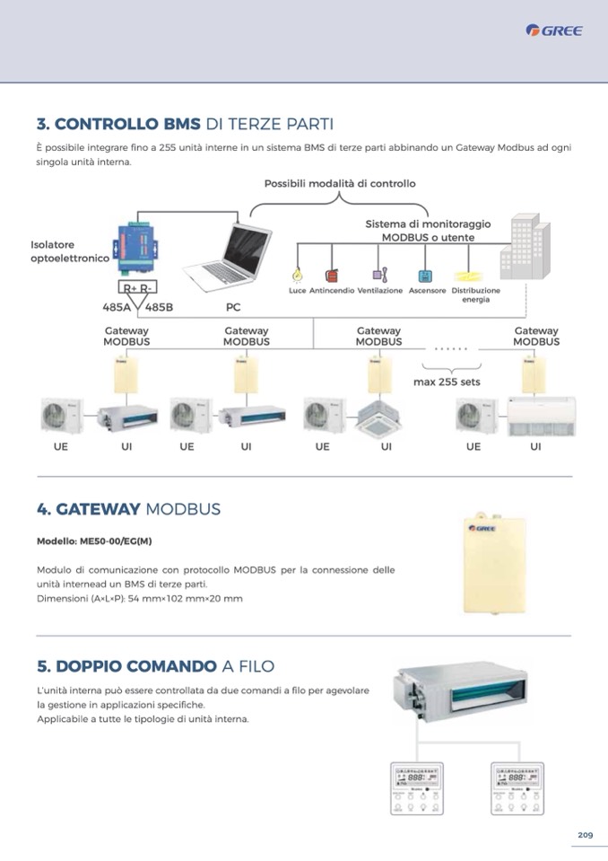 È possibile integrare fino a 255 unità interne in un sistema BMS di terze parti abbinando un Gateway Modbus ad ogni