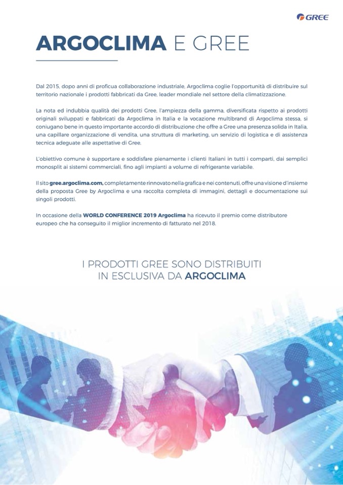 territorio nazionale i prodotti fabbricati da Gree, leader mondiale nel settore della climatizzazione.